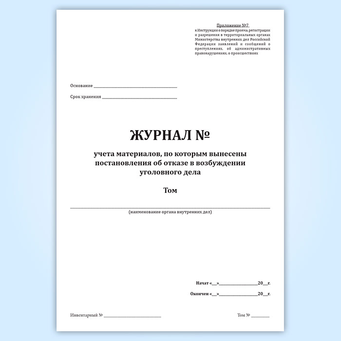 Журнал учета материалов, по которым вынесены постановления об отказе в возбуждении уголовного дела в Омске купить