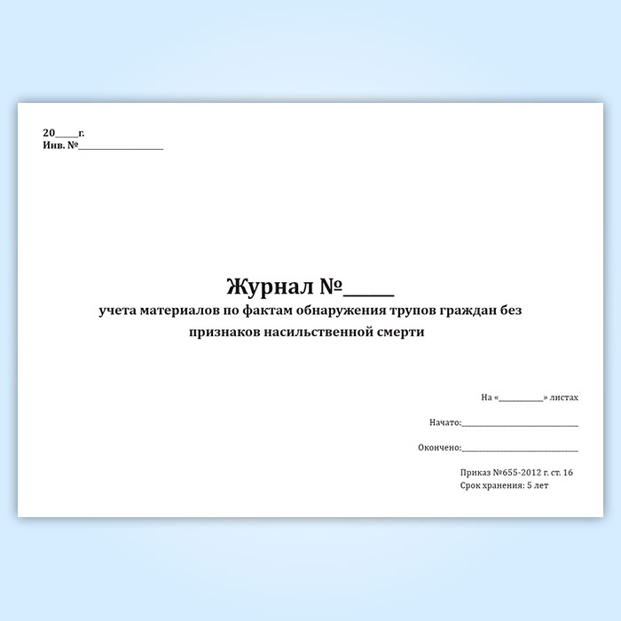 Журнал учета материалов по фактам обнаружения трупов граждан без признаков насильственной смерти в Омске купить