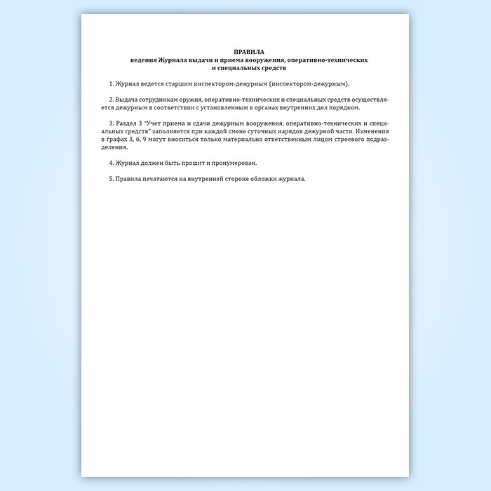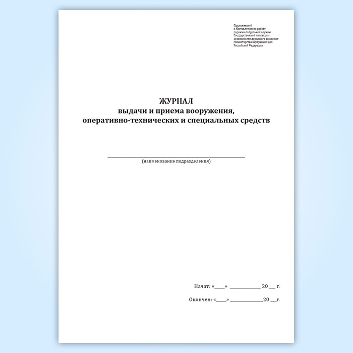 Журнал выдачи и приема вооружения, оперативно-технических и специальных средств в Омске купить
