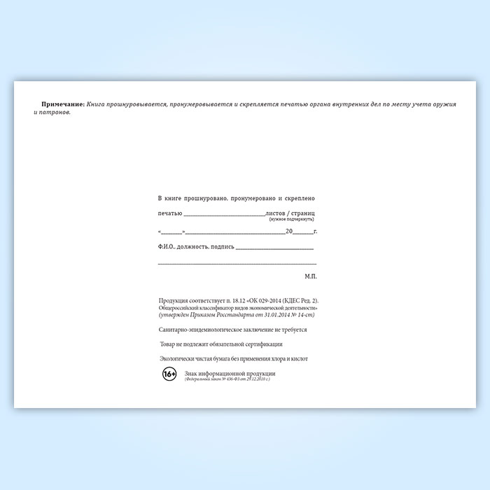Книга номерного учета и персонального закрепления оружия и патронов в Омске купить