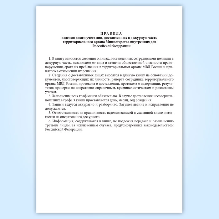 Книга учета лиц, доставленных в дежурную часть территориального органа МВД РФ в Омске купить