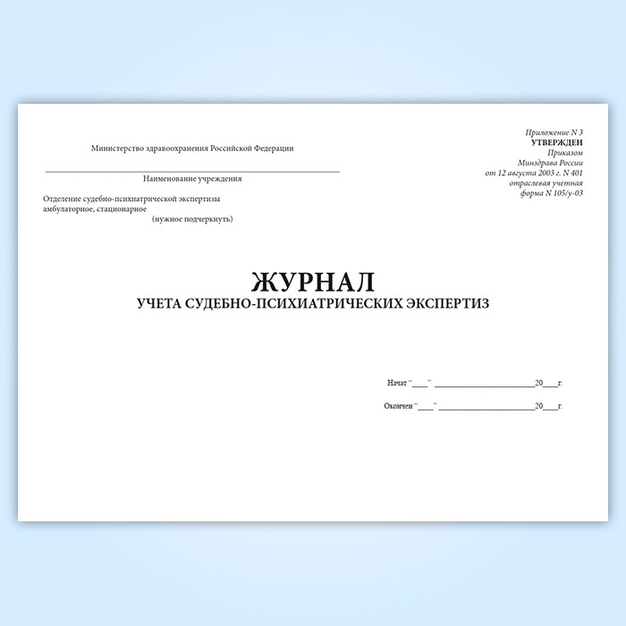 Журнал учета судебно-психиатрических экспертиз (форма 105/у-03) в Омске купить