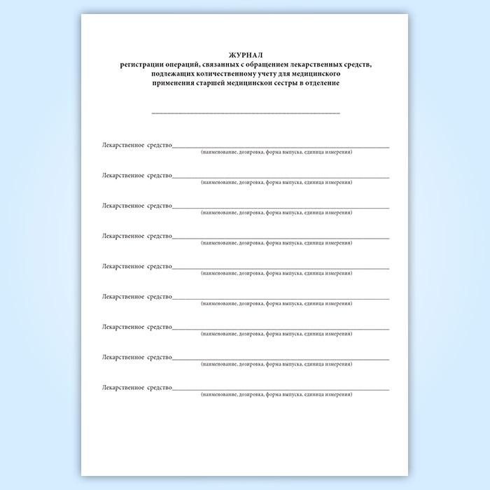 Журнал регистрации операций, связанных с обращением лекарственных средств, подлежащих количественному учету для медицинского применения старшей медицинской сестры в отделение в Омске купить