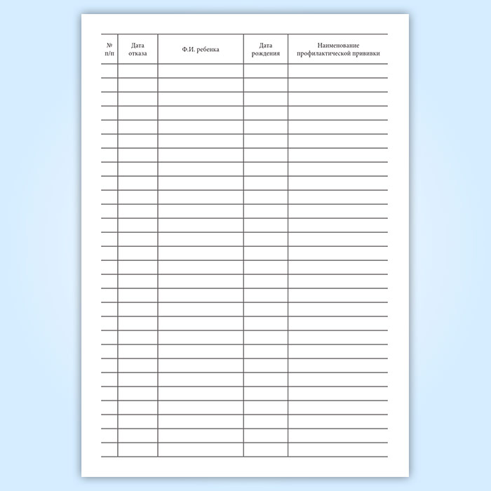 Журнал регистрации отказов от профилактических прививок в Омске купить