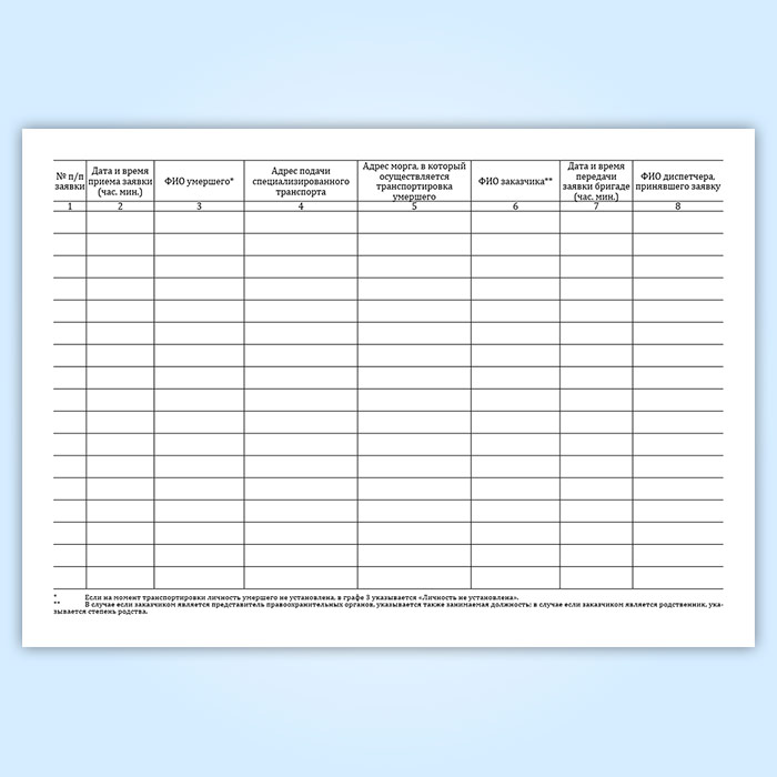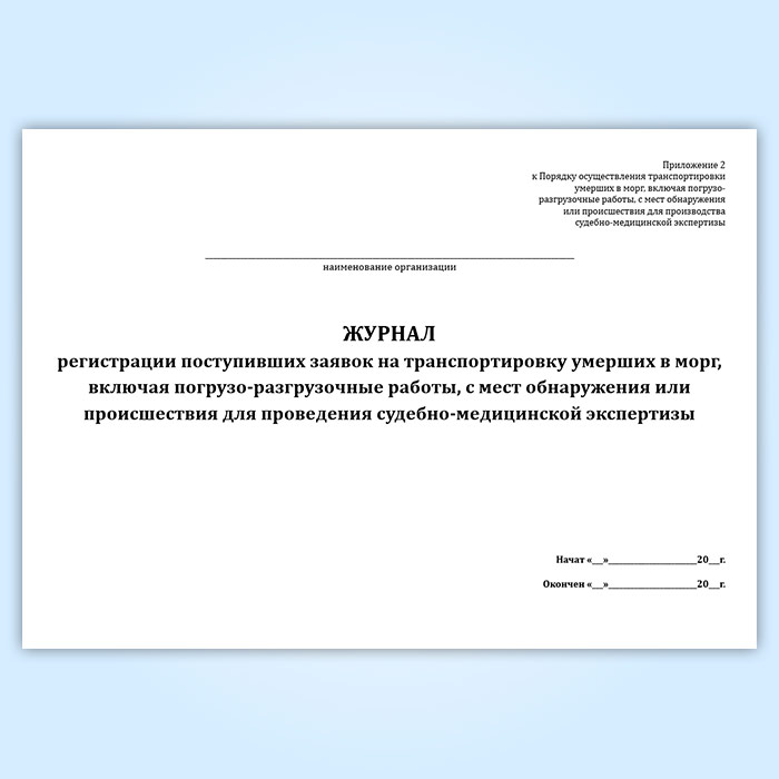 Журнал регистрации поступивших заявок на транспортировку умерших в морг, включая погрузо-разгрузочные работы, с мест обнаружения или происшествия для проведения судебно-медицинской экспертизы в Омске купить