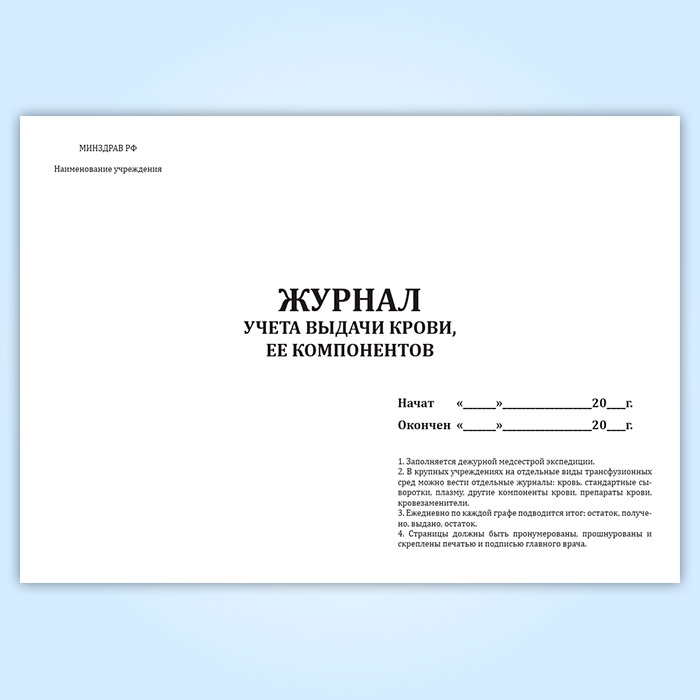 Журнал учета выдачи крови, ее компонентов в Омске купить