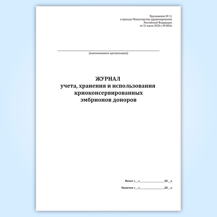 Журнал учета, хранения и использования криоконсервированных эмбрионов доноров в Омске купить