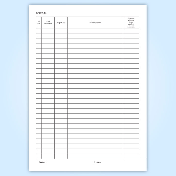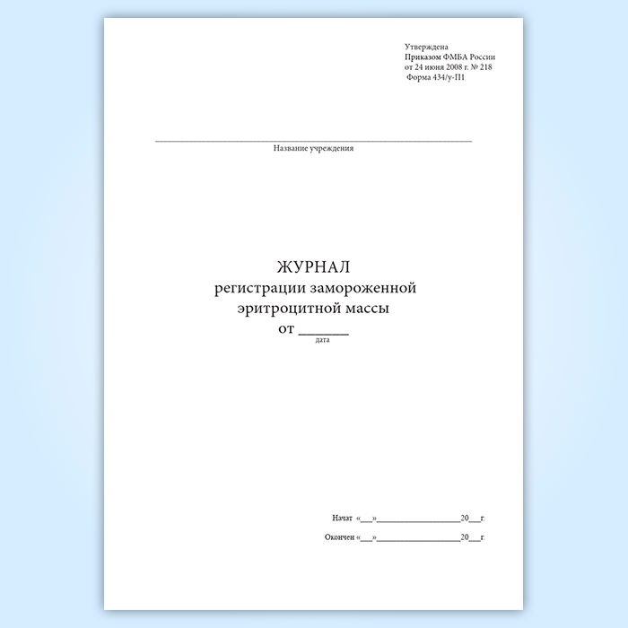 Журнал регистрации замороженной эритроцитной массы (форма 434/у-П1) в Омске купить