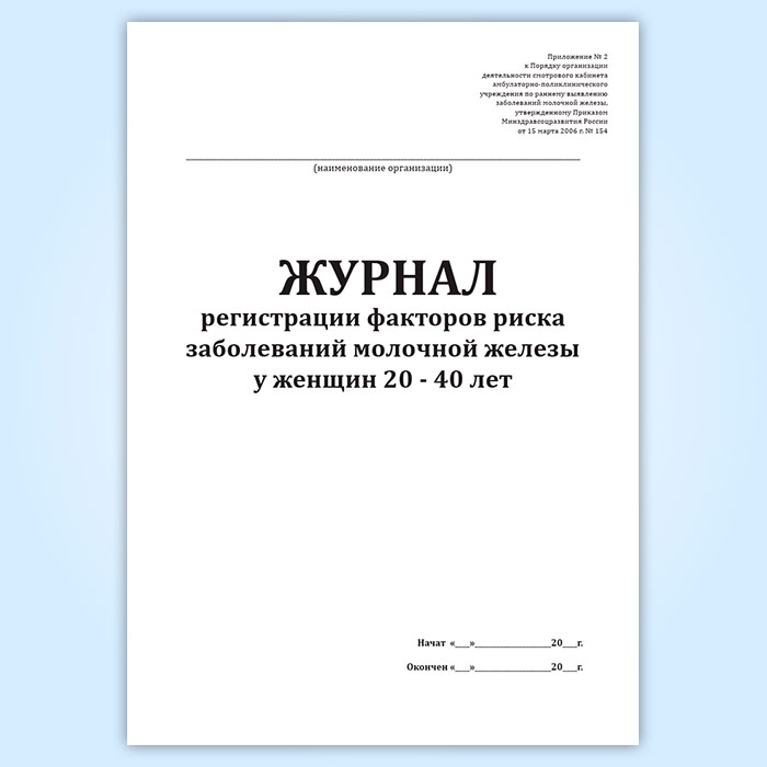 Журнал регистрации факторов риска заболеваний молочной железы у женщин 20-40 лет в Омске купить