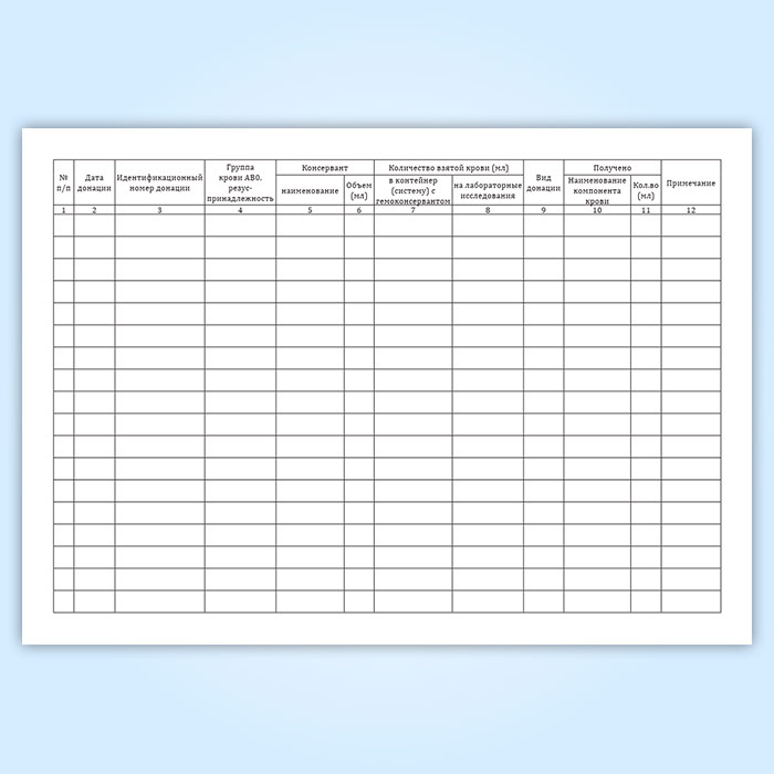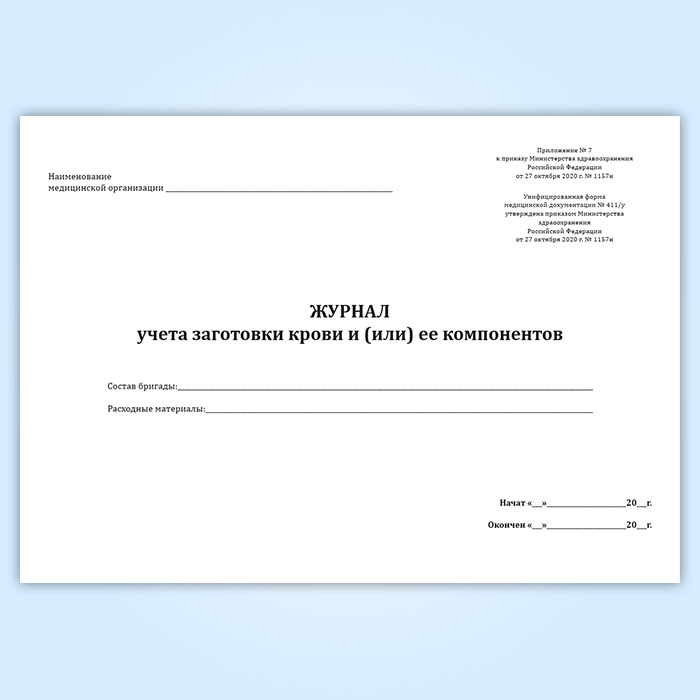 Журнал учета заготовки крови и (или) ее компонентов (форма № 411/у) в Омске купить