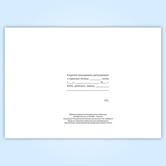 Вы получаете печатную продукцию прошнурованной и c местом для вашей печати в соответствии с действующими нормативными документами: