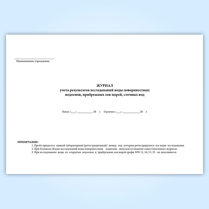 Журнал учета результатов исследований воды поверхностных водоемов, прибрежных зон морей, сточных вод (форма № 324-у) в Омске купить
