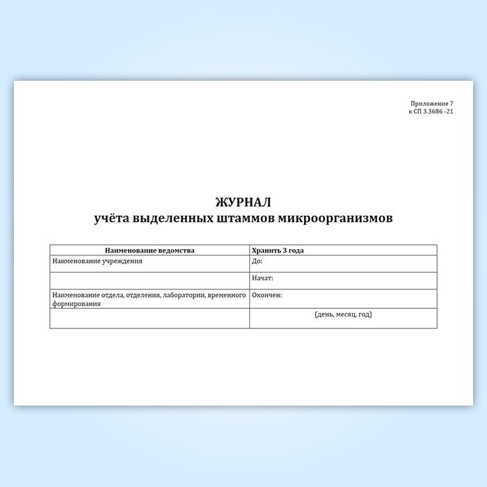 Журнал учета выделенных штаммов микроорганизмов (СанПиН 3.3686-21) в Омске купить