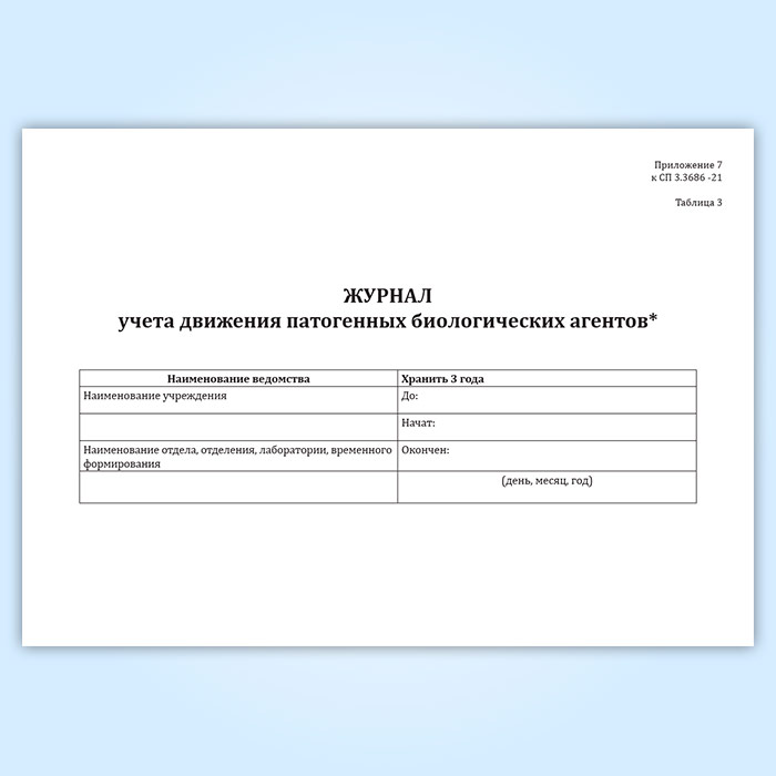 Журнал учета движения патогенных биологических агентов (СанПиН 3.3686-21) в Омске купить