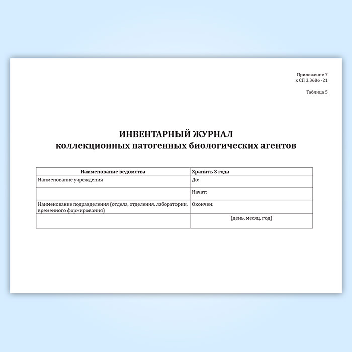 Инвентарный журнал коллекционных патогенных биологических агентов (СанПиН 3.3686-21) в Омске купить