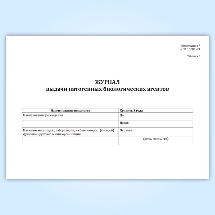 Журнал выдачи патогенных биологических агентов (СанПиН 3.3686-21) в Омске купить