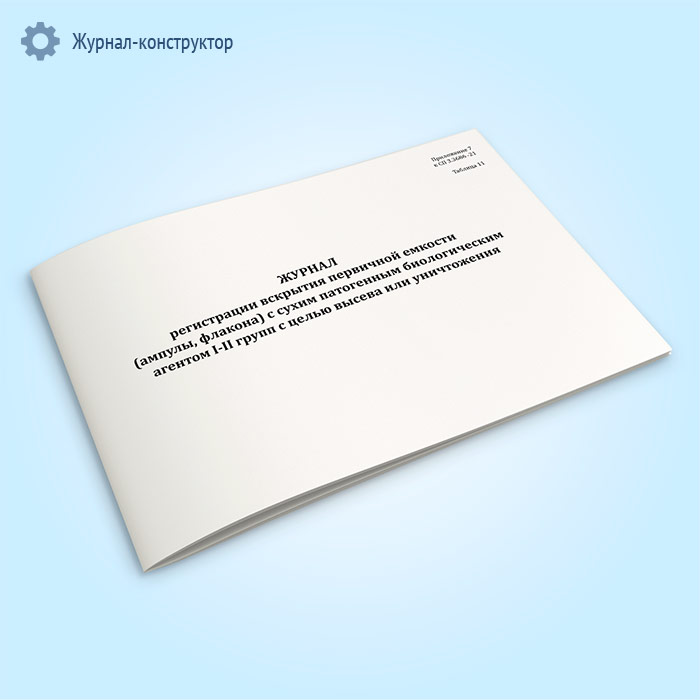 Журнал регистрации вскрытия первичной емкости (ампулы, флакона) с сухим патогенным биологическим агентов I-II групп с целью высева или уничтожения в Омске купить