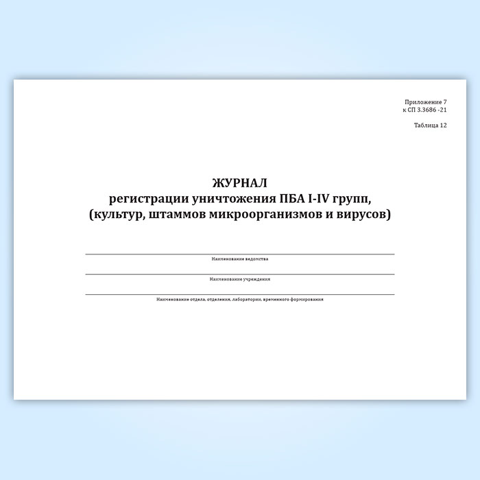 Журнал регистрации уничтожения ПБА I-IV групп, (культур, штаммов микроорганизмов и вирусов) в Омске купить