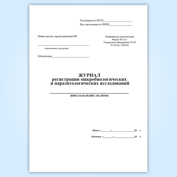 Журнал регистрации микробиологических и паразитологических исследований (форма 252/у) в Омске купить