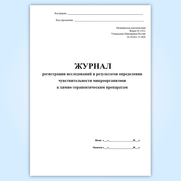 Журнал регистрации исследований и результатов определения чувствительности микроорганизмов к химио-терапевтическим препаратам (форма 254/у) в Омске купить