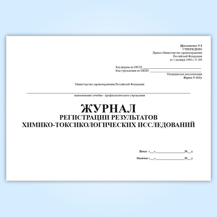 Журнал регистрации результатов химико-токсикологических исследований (форма 453у-06) в Омске купить