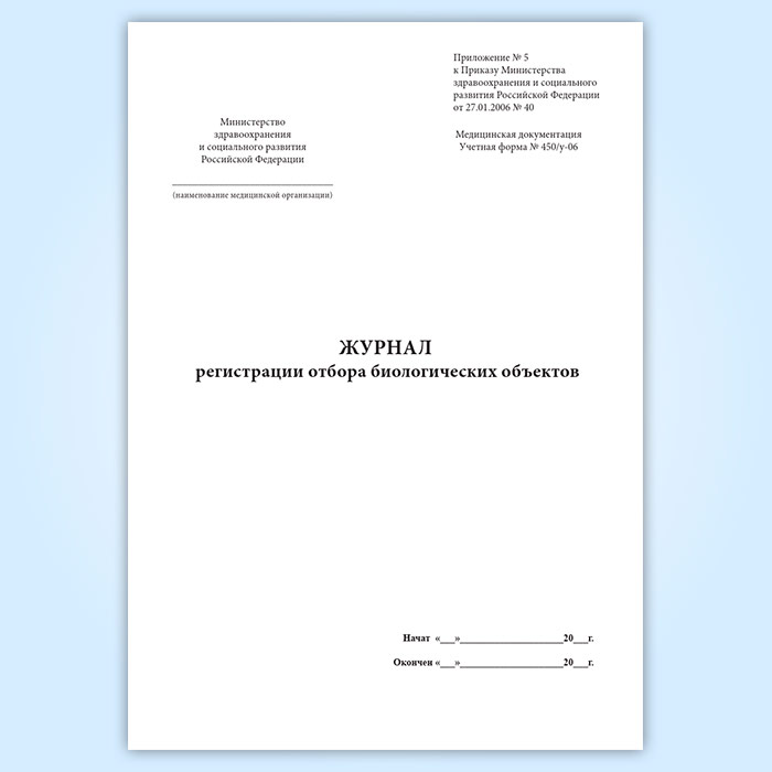 Журнал регистрации отбора биологических объектов (форма 450у-06) в Омске купить