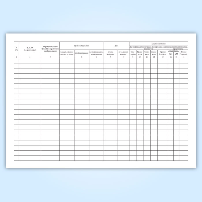 Журнал учета серологических исследований на паразитарные заболевания в Омске купить
