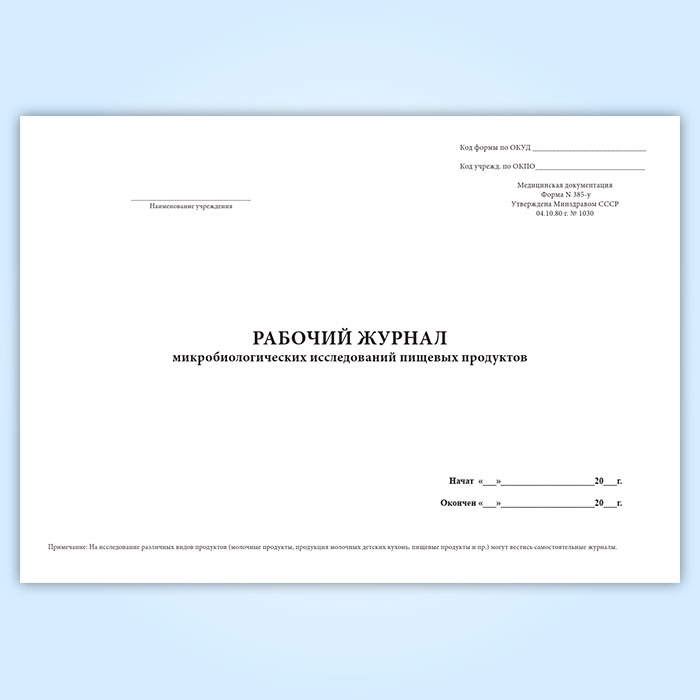 Рабочий журнал микробиологических исследований пищевых продуктов (форма 385/у) в Омске купить