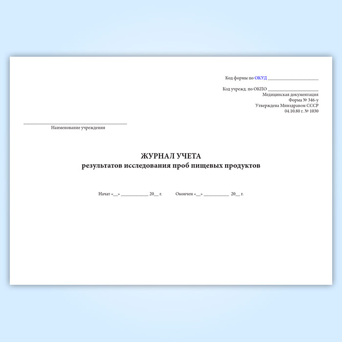Журнал учета результатов исследования проб пищевых продуктов (форма 346/у) в Омске купить