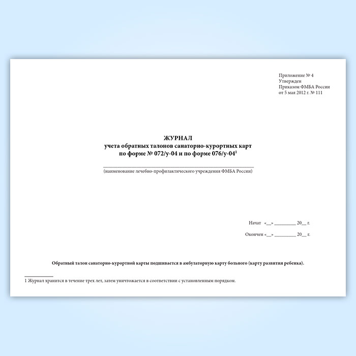 Журнал учета обратных талонов санаторно-курортных карт по форме (№ 072/у-04 и по форме 076/у-04 ) в Омске купить