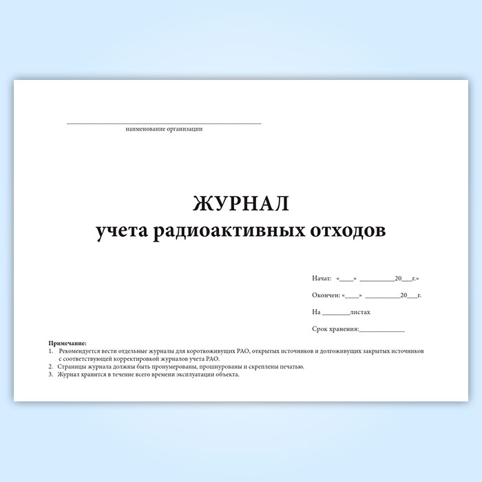 Журнал учета радиоактивных отходов (СанПиН 2.6.1.3288-15) в Омске купить