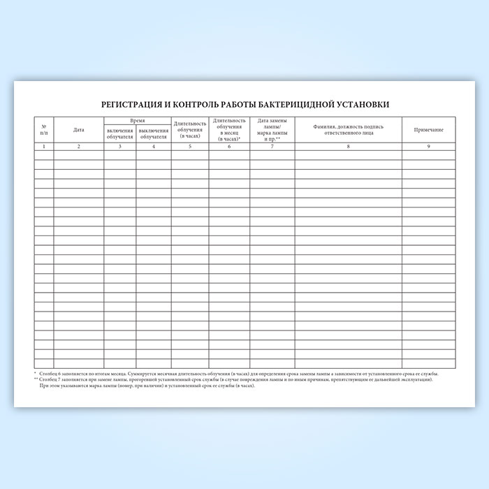Журнал регистрации и контроля ультрафиолетовой бактерицидной установки (А4) в Омске купить