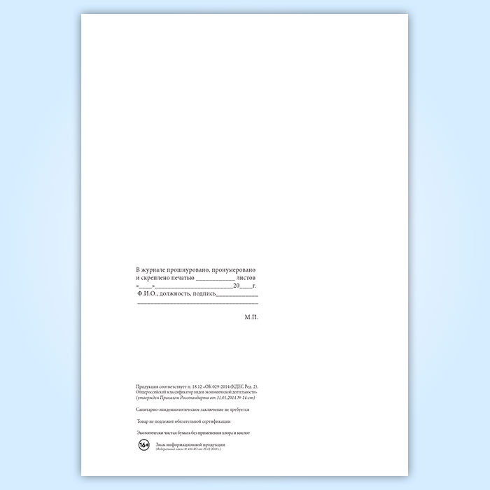 Вы получаете печатную продукцию прошнурованной и c местом для вашей печати в соответствии с действующими нормативными документами: