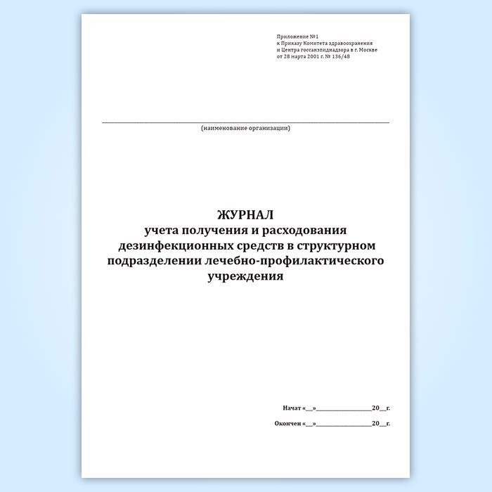 Журнал учета получения и расходования дезинфекционных средств в структурном подразделении лечебно-профилактического учреждения в Омске купить