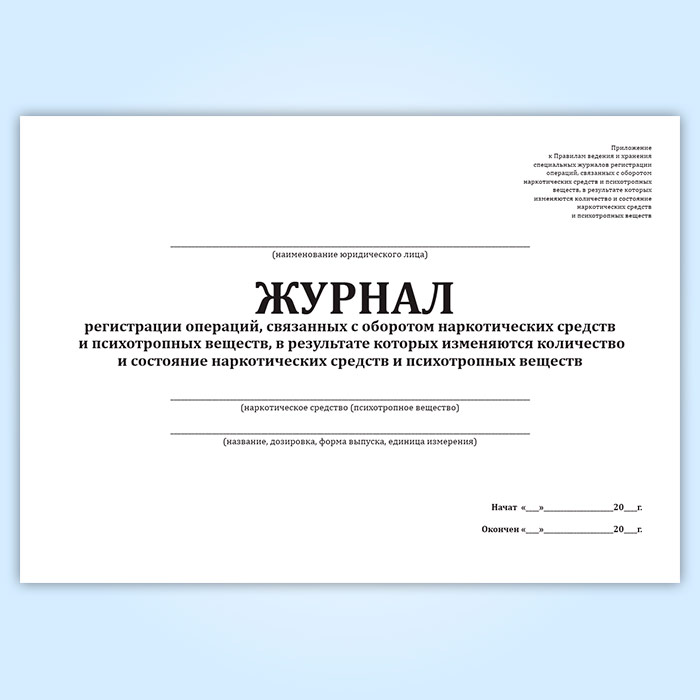 Журнал регистрации операций, связанных с оборотом наркотических средств и психотропных веществ, в результате которых изменяются количество и состояние наркотических средств и психотропных веществ в Омске купить