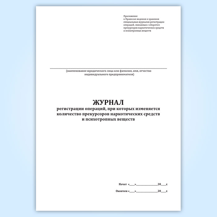 Журнал регистрации операций, при которых изменяется количество прекурсоров наркотических средств и психотропных веществ в Омске купить