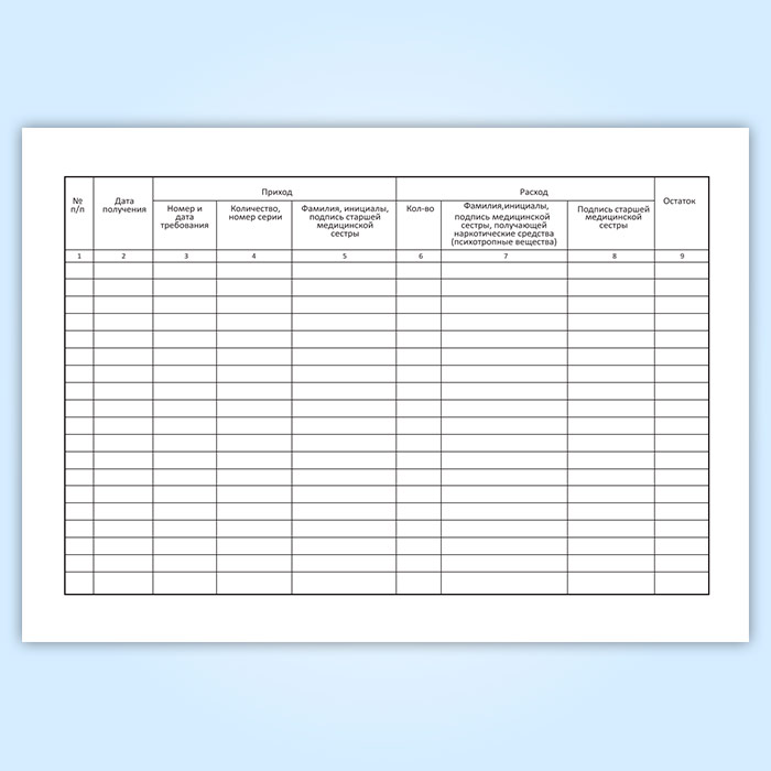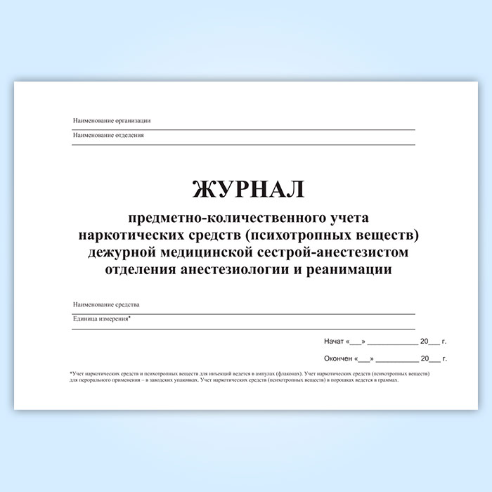 Журнал предметно-количественного учета наркотических средств (психотропных веществ) дежурной медицинской сестрой-анастезистом отделения анастезиологии и реанимации в Омске купить