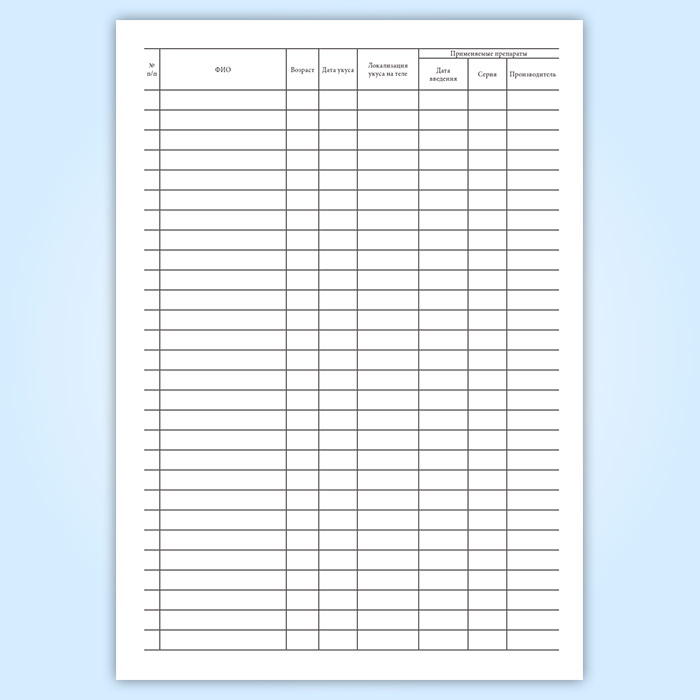 Журнал учета покусов людей животными (форма А002) в Омске купить