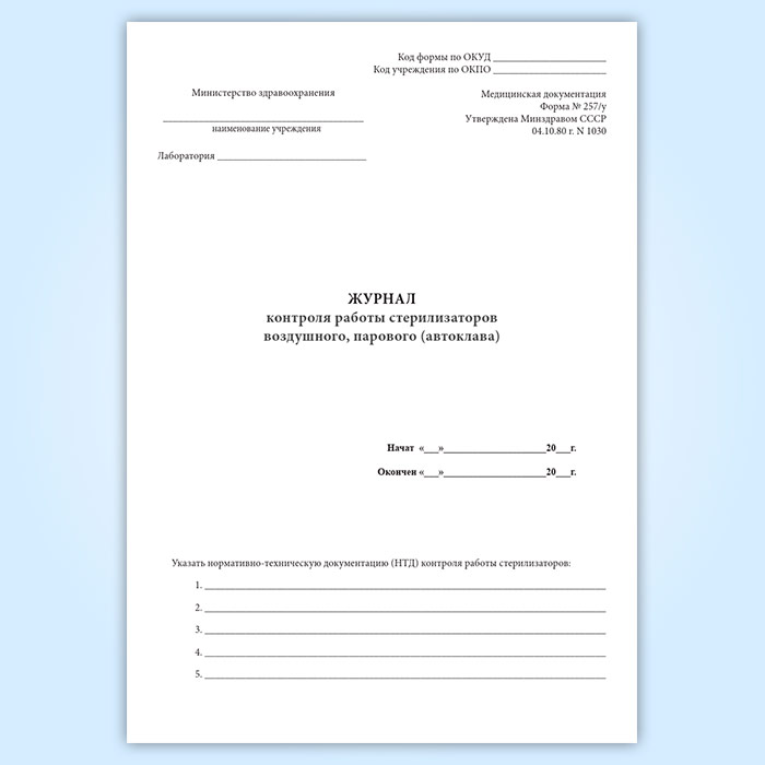 Журнал контроля работы стерилизаторов воздушного, парового (автоклава) (форма 257/у) в Омске купить