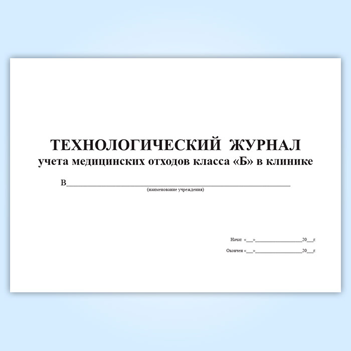 Технологический журнал учета медицинских отходов класса Б в клинике в Омске купить