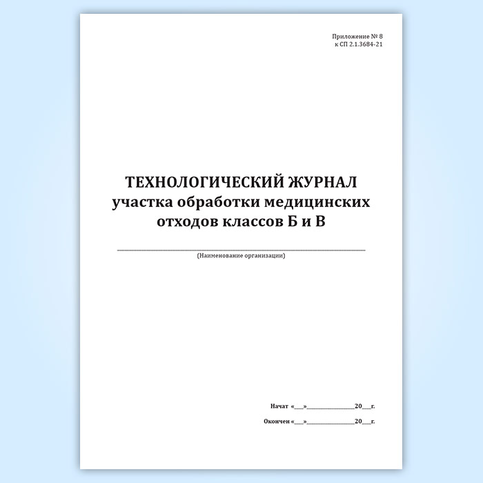 Технологический журнал участка обработки медицинских отходов классов Б и В в Омске купить