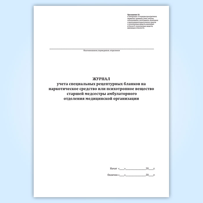 Журнал учета специальных рецептурных бланков на наркотическое средство или психотропное вещество старшей медсестры амбулаторного отделения медицинской организации в Омске купить