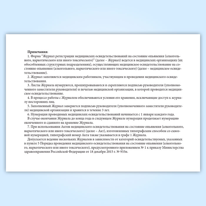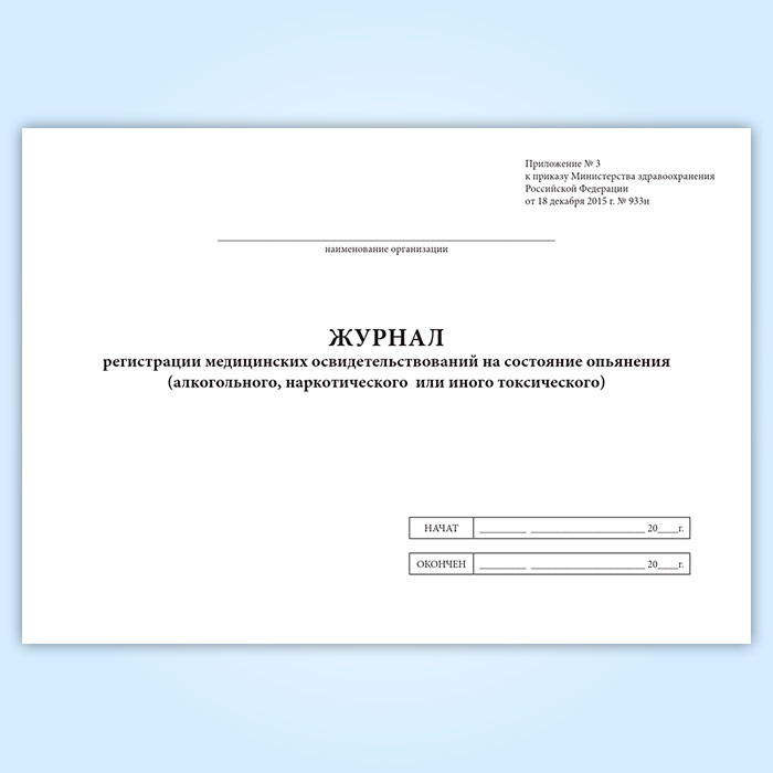 Журнал регистрации медицинских освидетельствований на состояние опьянения (алкогольного, наркотического или иного токсического) в Омске купить