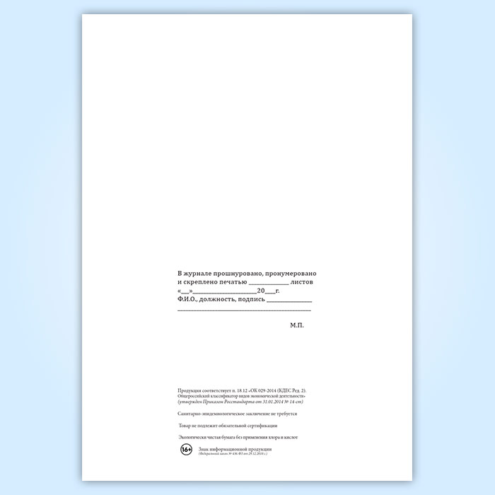 Вы получаете печатную продукцию прошнурованной и c местом для вашей печати в соответствии с действующими нормативными документами: