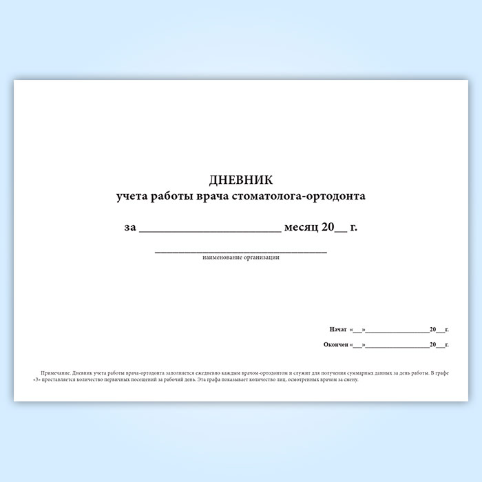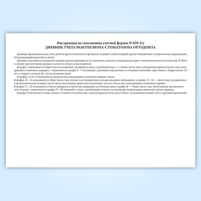 Дневник учета работы врача стоматолога-ортодонта (форма 039-3у) в Омске купить