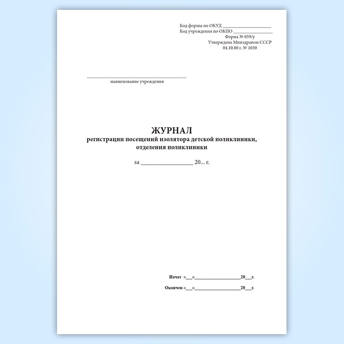 Журнал регистрации посещений изолятора детской поликлиники, отделения поликлиники (форма 059/У) в Омске купить
