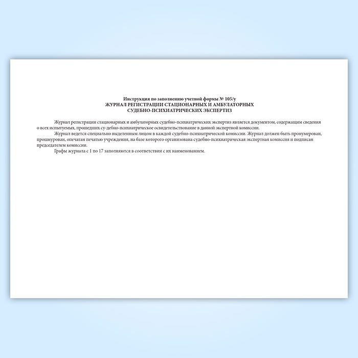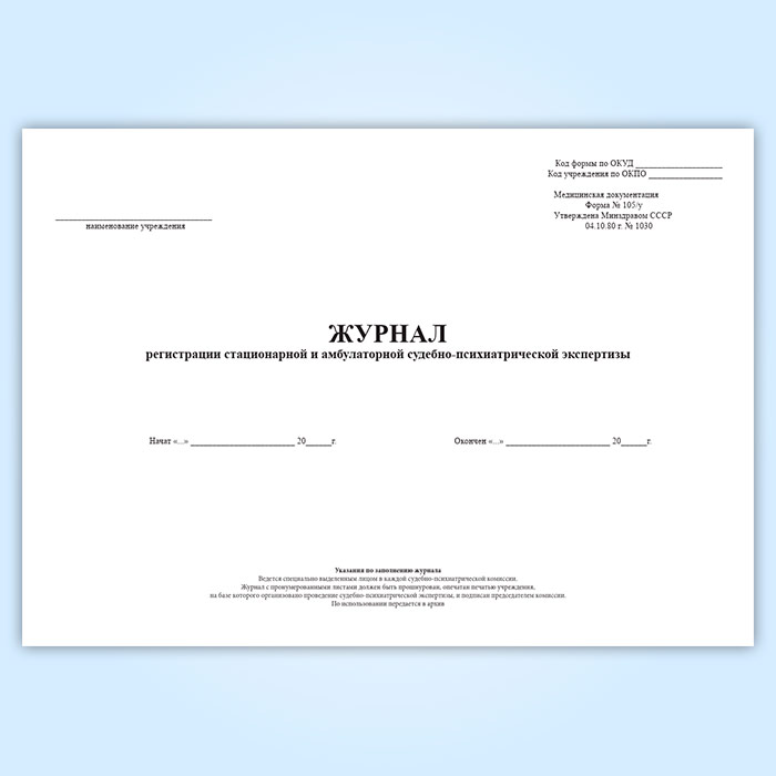 Журнал регистрации стационарной и амбулаторной судебно-психиатрической экспертизы (форма 105/у) в Омске купить