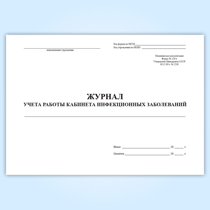 Журнал учета работы кабинета инфекционных заболеваний (форма 128/у) в Омске купить