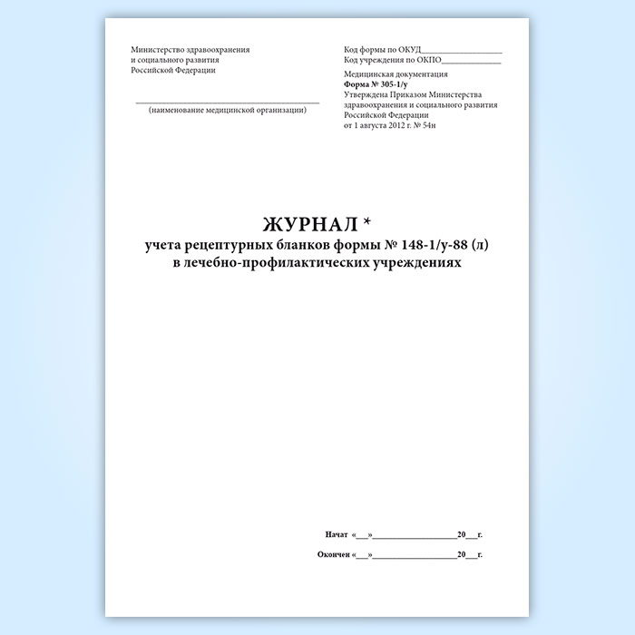 Журнал учета рецептурных бланков формы № 148-1/у-88 (л) в лечебно-профилактических учреждениях форма 305/у-1 в Омске купить