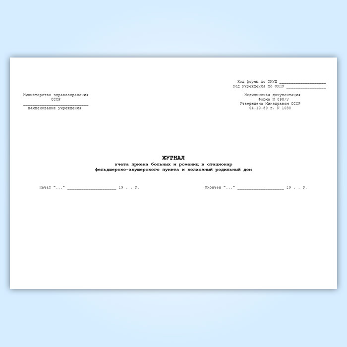 Журнал учета приема больных и рожениц в стационар фельдшерско-акушерского пункта, колхозного родильного дома (форма 098/у) в Омске купить
